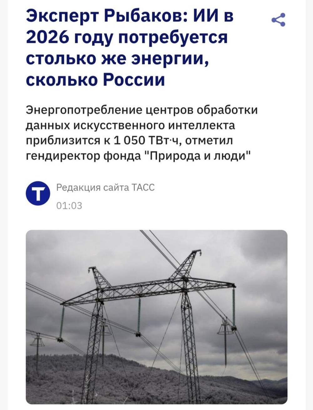 Цифра дня: нейронки в этом году потратят электроэнергии как вся Россия 😳
