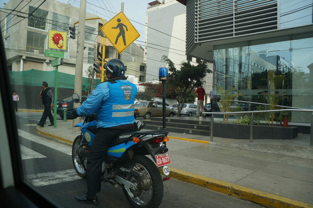 Полиция в Перу мне показалась милой и симпатичной. В одном небольшом городке мы повстречали полицейского на мотоцикле, который увидев нас, гуляющих по ночным пустынным улицам, поехал перед нами распугивая бродячих собак.