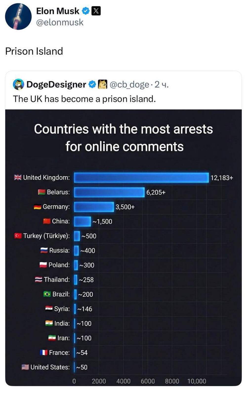 КККрымский каналЗаконы и реформыРоссия лишь шестая в мире по арестам за онлайн-комментарии, уступая БританииРоссия лишь шестая в мире по арестам за онлайн-комментарии, уступая Британии, Германии и Турции.
