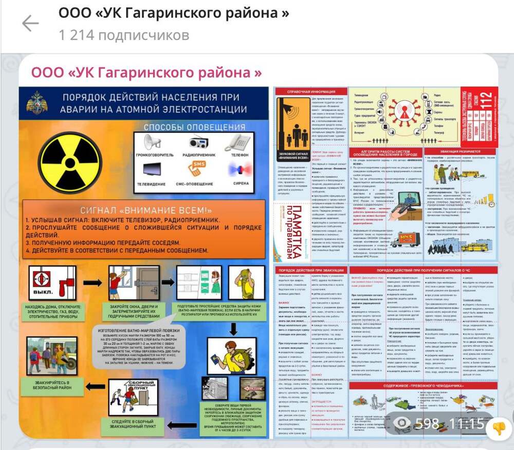 Общественники заметили, что управляющая компания Гагаринского района Севастополя в своем официальном телеграм-канале без каких-либо пояснений опубликовала памятки с порядком действий населения во время аварии на атомной электростанции. Какой-то американо-иранский SMM.