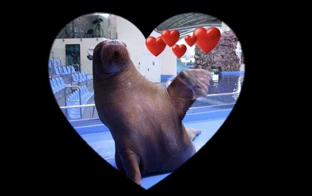 14 февраля главный романтик Приморского океанариума – морж Миша – решил напомнить о себе московской красавице Лоре. Как сообщили ТАСС в пресс-службе "Москвариума", свидание прошло в онлайн-формате, но от этого не стало менее трогательным. "Миша исполнил романтический танец, прихлопывая ластами,... Далее