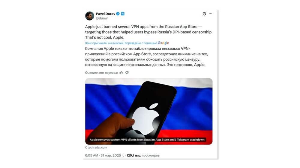 Телеграм рассылает предупреждение, что сегодня последний день, когда возможно будет оплатить подписку на Телеграм. Потом мол нельзя будет. Такой себе прогрев. Также активно обсуждается тема ужесточения блокировки Телеграма с 1 апреля, то есть уже с завтрашнего дня. Паша Дуров между тем осудил Apple... Далее