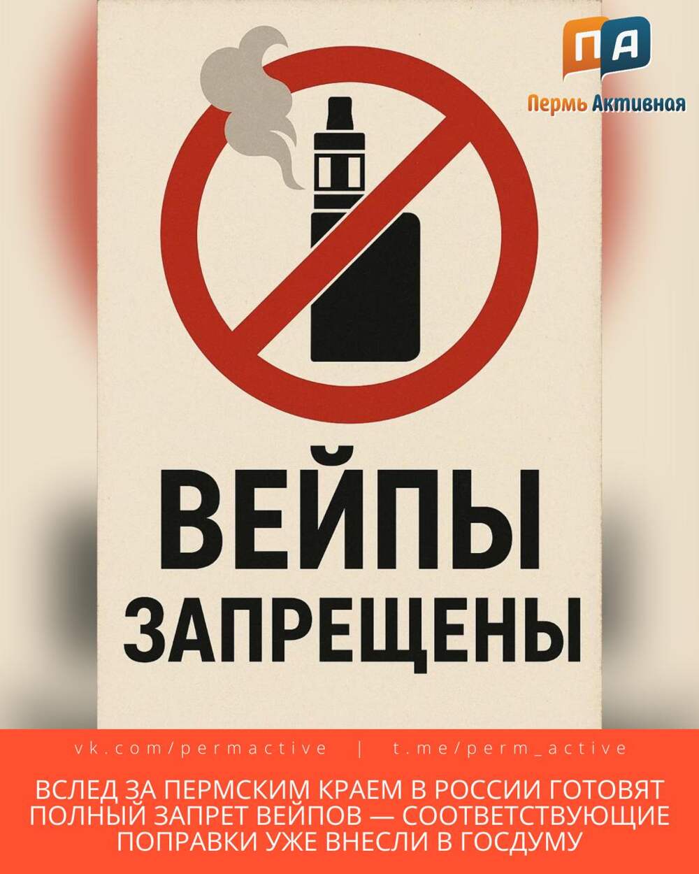 💨 Вслед за Пермским краем в России готовят полный запрет вейпов — соответствующие поправки уже внесли в Госдуму.