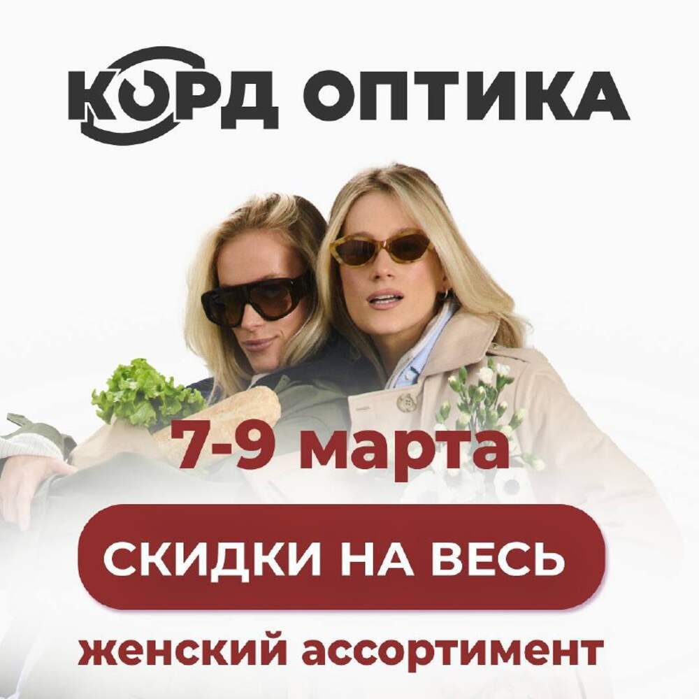8 марта — отличный повод порадовать себя или выбрать подарок для любимых женщин 🌷 7, 8 и 9 марта во всех салонах КОРД ОПТИКА действует скидка 20% на весь женский ассортимент: оправы и солнцезащитные очки. Стильные, выразительные, те самые аксессуары, которые носят каждый день. Можно обновить... Далее