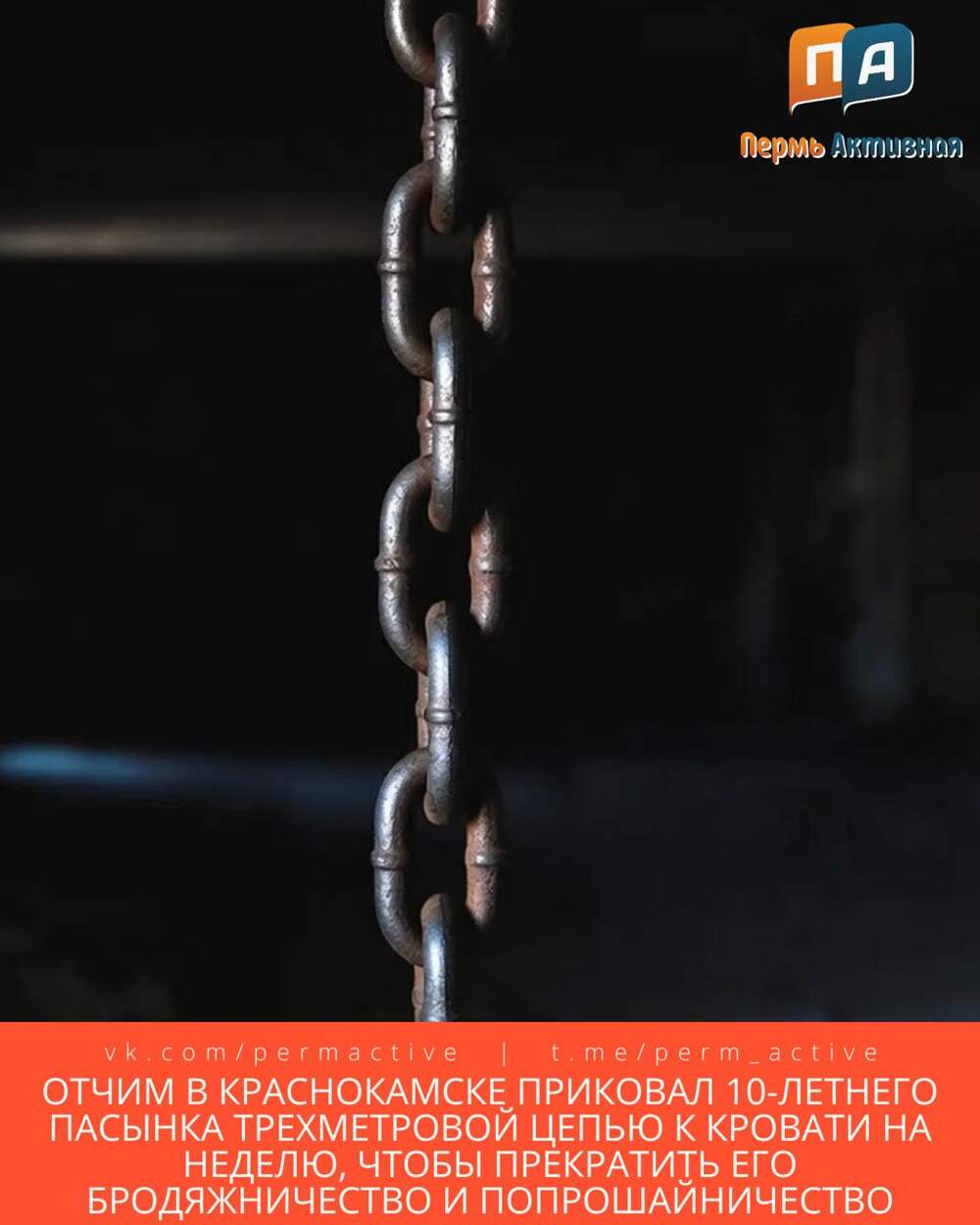 🔗 Отчим в Краснокамске приковал 10-летнего пасынка трехметровой цепью к кровати