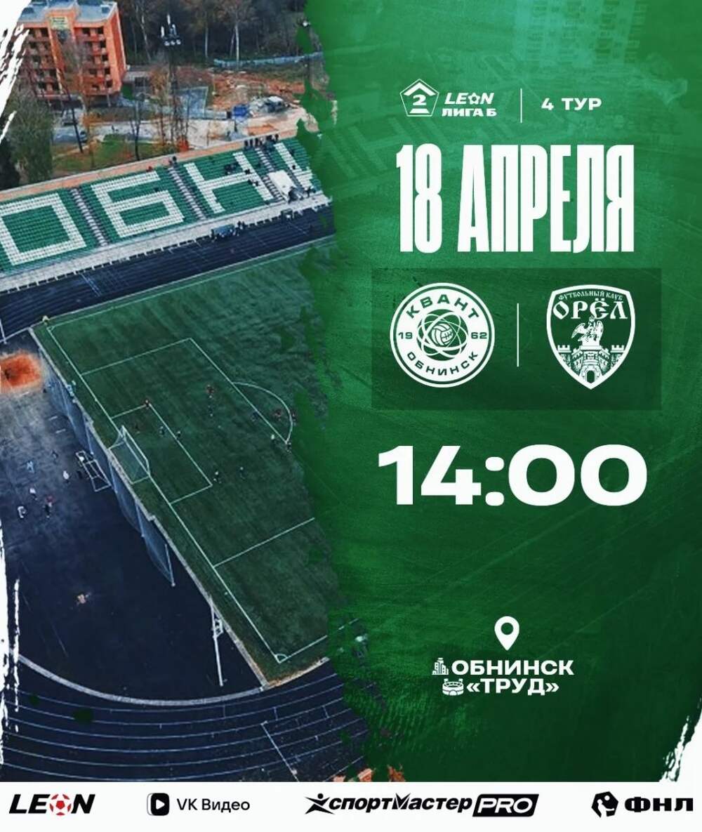 В 14.00 в Обнинске начнется матч между местным «Квантом» и ФК «Орел». От «зелено-белых» болельщики ждут сегодня только победы. В 14.00 в Обнинске начнется матч между местным "Квантом" и ФК "Орел". От "зелено-белых" болельщики ждут сегодня только победы. Соперники из Калужской области считаются... Далее