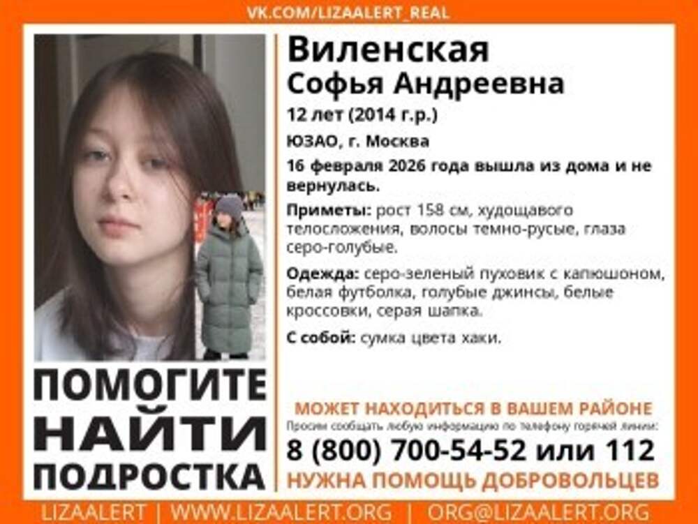 12-летнюю девочку, пропавшую в Москве, разыскивают в том числе в Калужской области. Школьница Софья #Виленская из ЮЗАО Москвы исчезла 16 февраля, с тех пор её судьба неизвестна. Девочку разыскивают не только в столице, она может находиться в Калужской области, сообщили волонтёры "ЛизаАлерт".... Далее