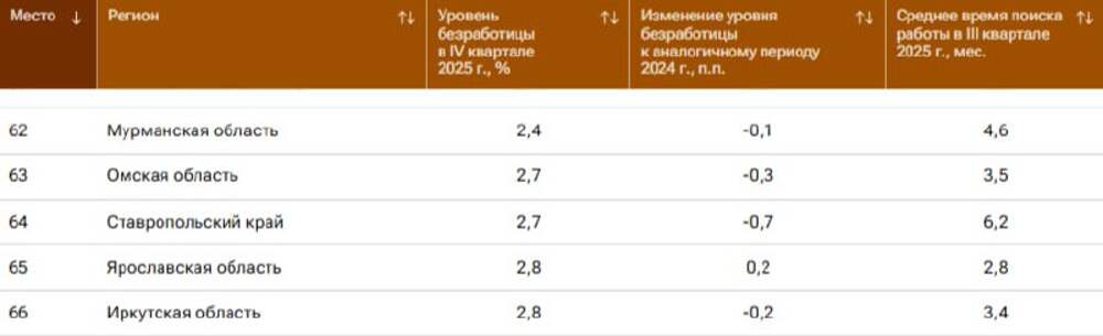 📊 Рейтинг регионов России по уровню безработицы