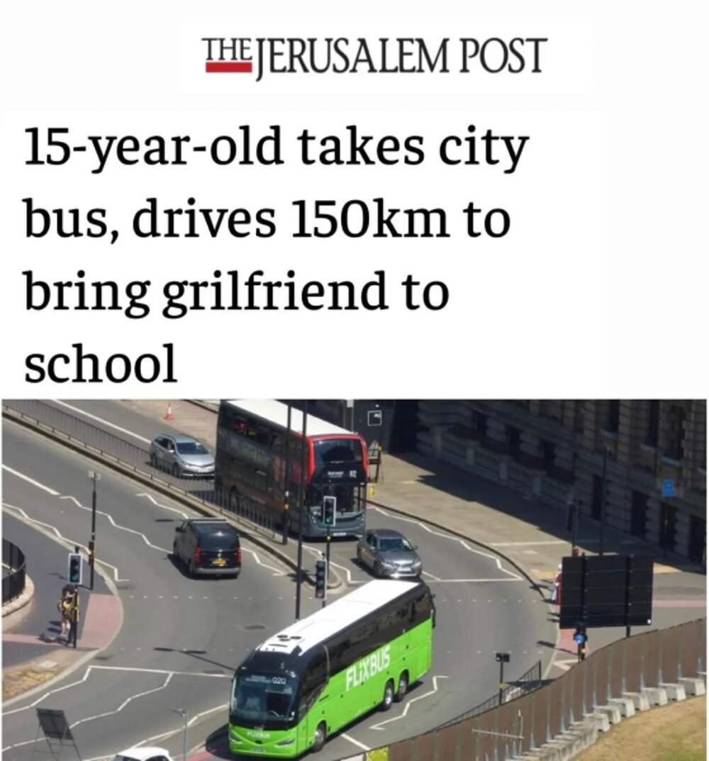 15-летний школьник в Германии угнал городской автобус, что отвезти свою девушку на учебу Ромео забрался в открытый автобус в пересменок водителей, посадил свою 14-летнюю подружку и дал по газам. Пока местные копы чесались, он умчал на 150 километров и успешно отвез пассию в школу в городе... Далее