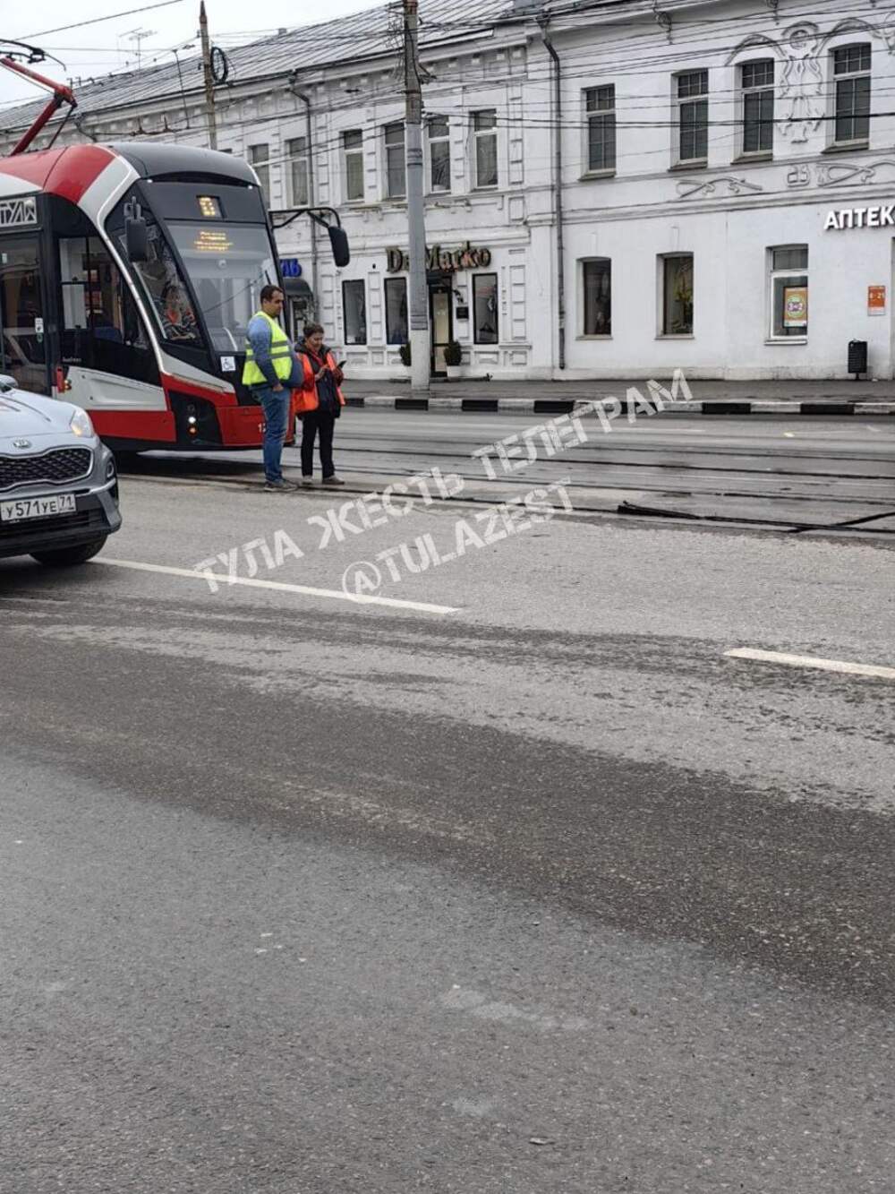 В Туле на улице Советской остановилось движение трамваев