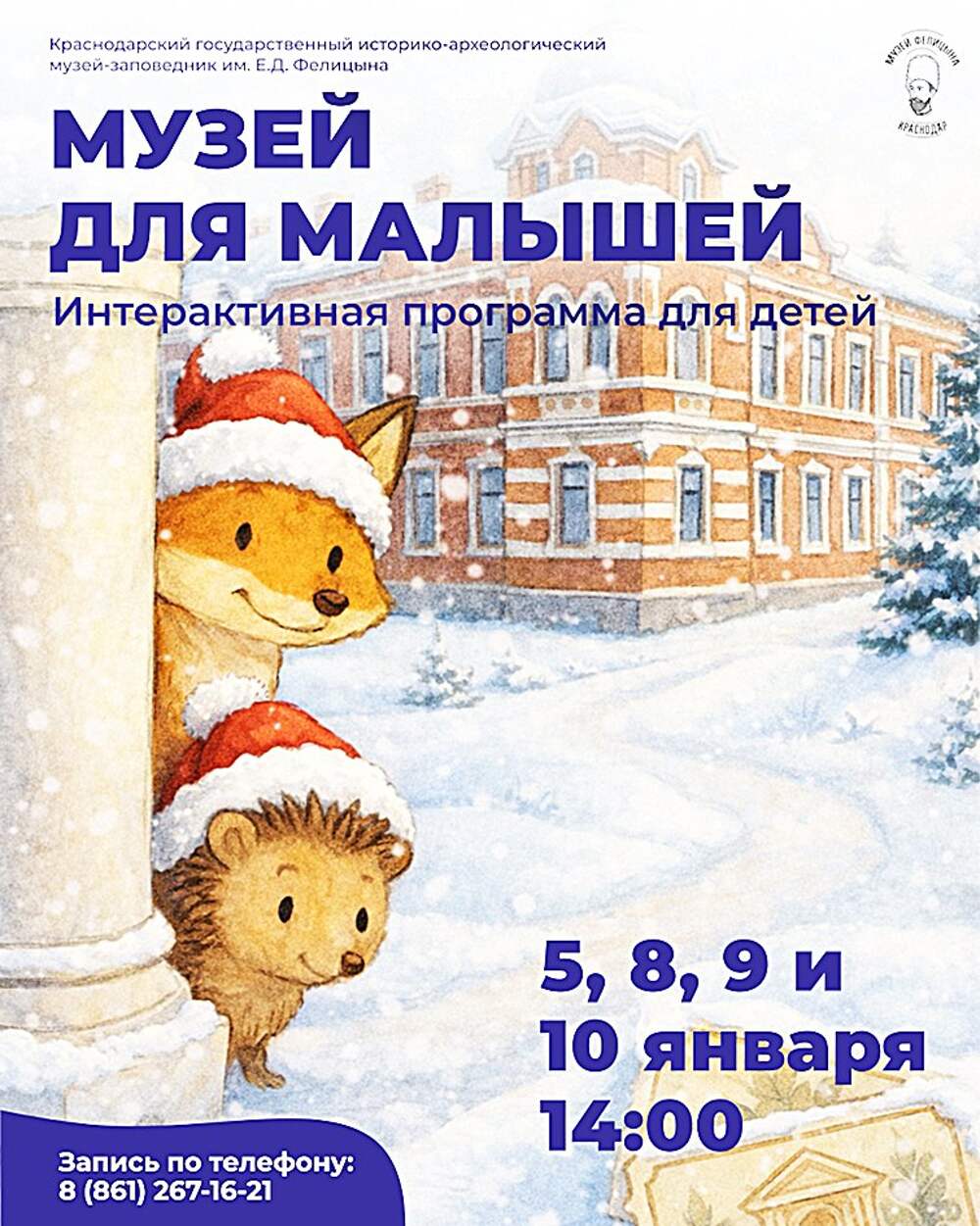 В дни зимних каникул (5, 8, 9 и 10 января в 14.00) музей имени Фелицына приглашает малышей на сказочную программу «Музей для малышей» — тёплое и увлекательное первое знакомство с миром истории и природы в праздничной атмосфере.