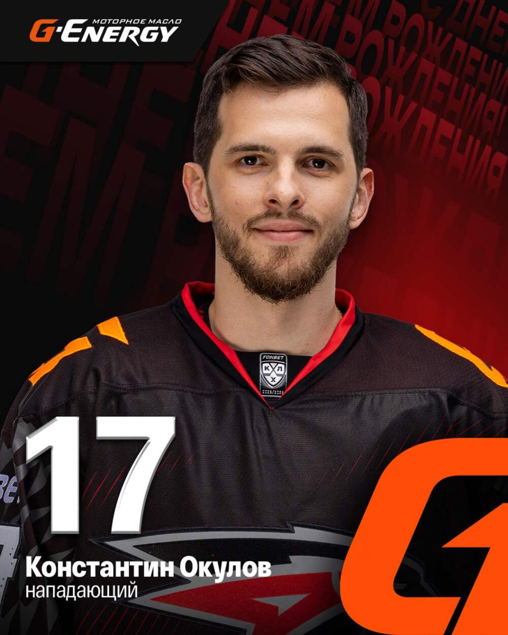 🎂 Сегодня день рождения у Константина Окулова! Ему исполнился 31 год. Желаем ещё больше бросков, поражающих ворота, ещё больше результативных передач в клюшки сокомандников, ещё больше улыбок, семейных благ и здоровья 💪 🦅 Будь в «Авангарде»