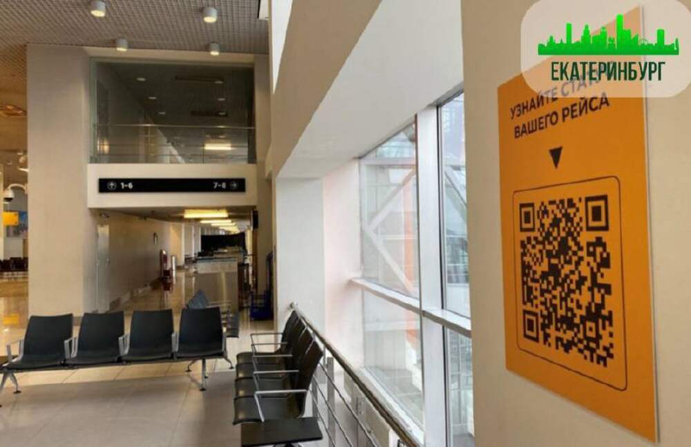 Для удобства QR-коды разместили в зонах ожидания вылета. Большинство табличек смонтированы рядом с диванами.