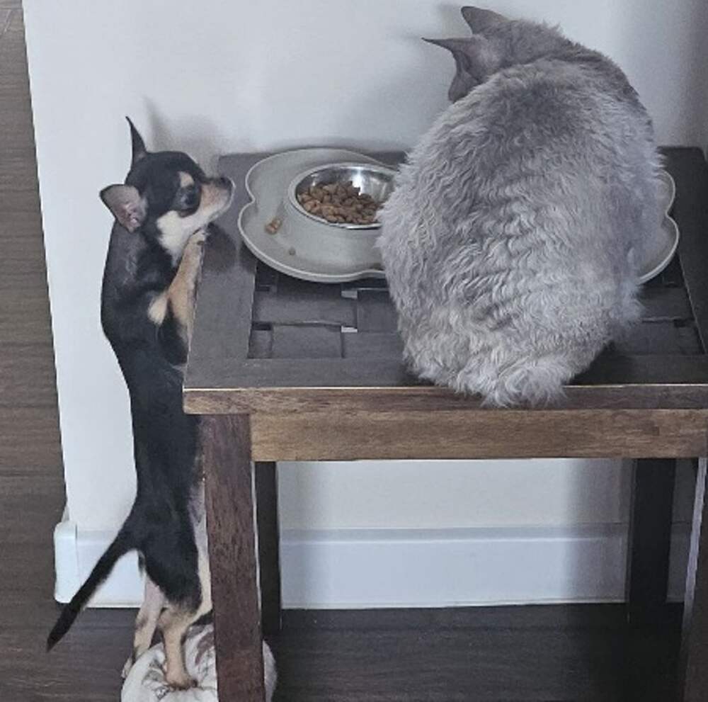 Все чихуахуа, которые были у меня до стихии, очень не любили есть. И Бабушка Волк и Лютик к еде относились так себе. Я вечно скакала вокруг них с бубнами. Буря не такая. Буре если дать возможность то есть она будет не переставая. Даже во сне. Причём все что не приколочено. Все что приколочено...Далее