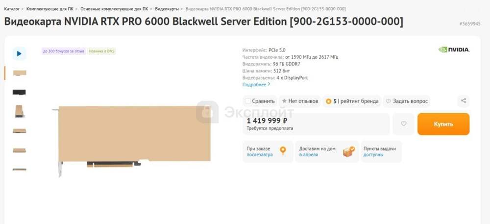 В Россию завезли самую мощную видеокарту на рынке — RTX PRO 6000 Blackwell Server Edition.