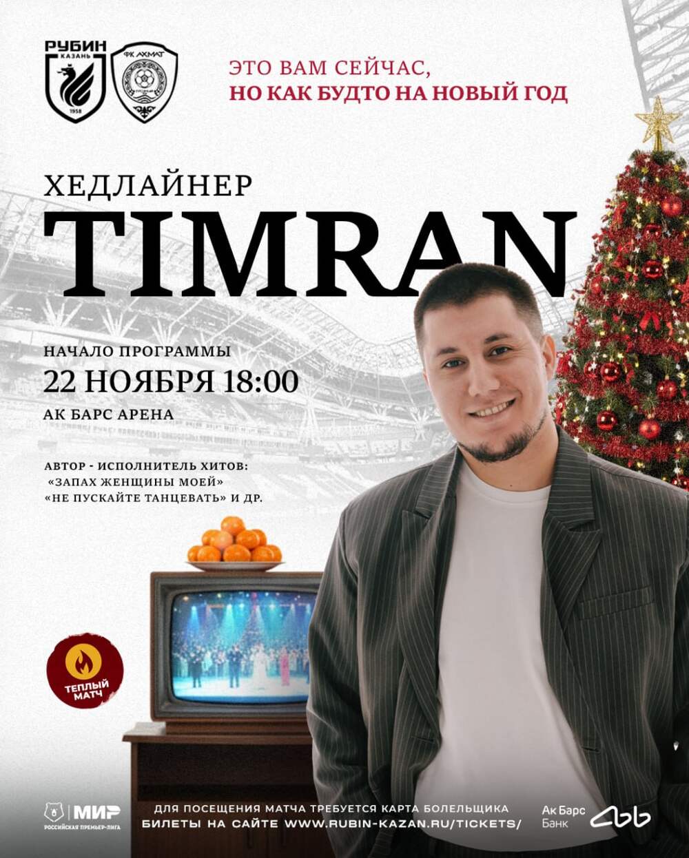 🎤 TIMRAN выступит перед матчем «Рубин» – «Ахмат