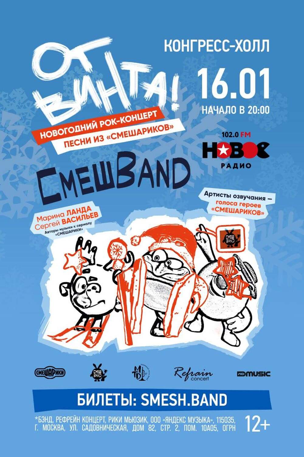 СмешBand — это театрализованное шоу, в котором объединяются элементы рока, джаза, фанка, этно- и поп-музыки. На сцене выступят бессменные авторы музыки и песен к сериалу «Смешарики» Марина Ланда и Сергей Васильев, а также...