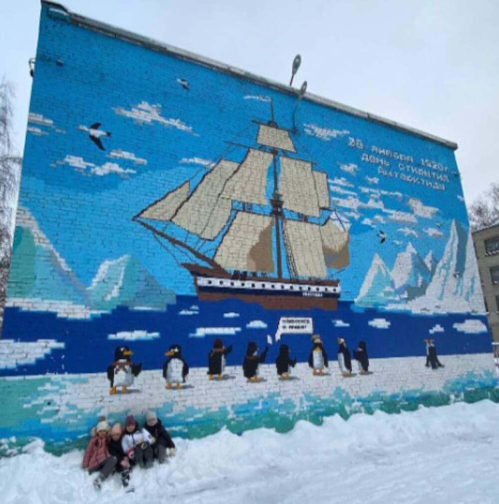 Здание 28-ой школы Владимира украсило граффити, посвящённое открытию Антарктиды