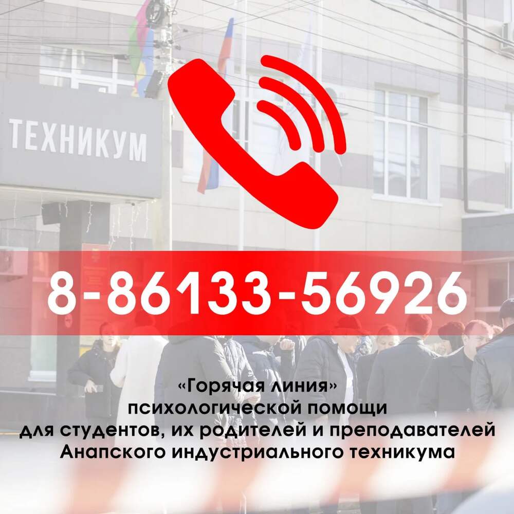 В Анапе работает «горячая линия» психологической помощи для студентов, их родителей и преподавателей Анапского индустриального техникума Консультации можно получить по телефону 8-86133-56926 (Анапский филиал Центра диагностики и консультирования Краснодарского края). Также для оказания... Далее